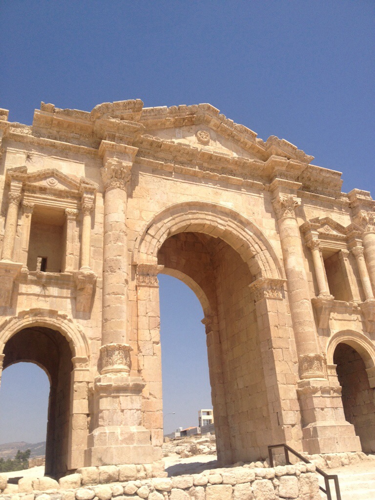 Nos recibe la antigüa ciudad con el Arco de Adriano, una puerta enorme en la que comienza nuestra solitaria aventura. (Debido a las guerras entre tooodos los paises fronterizos el volumen de turismo es minimo ahora mismo, algo que a los Jordanos no les mola, pero a mi me tiene supercontenta!) tras el arco, encontramos el hipódromo, en el que no es dificil sentarse a imaginar las carreras de cuadrigas… El lateral izquierdo esta cubierto de gradas, en el medio apilada hierba que separa los dos carriles dividiendo el espacio por la mitad, para que den la vuelta, al fondo la grada presidencial. En el suelo se ven las marcas de las cuadrigas, y estas sabemos a ciencia cierta que no son del siglo II, sino que semanalmente se hace un espectáculo con carreras de cuadrigas, el de esta semana es mañana, mierda! Seguro que con la poca gente que hay me dejaban sentarme en la grada presidencial como a las reinonas!!