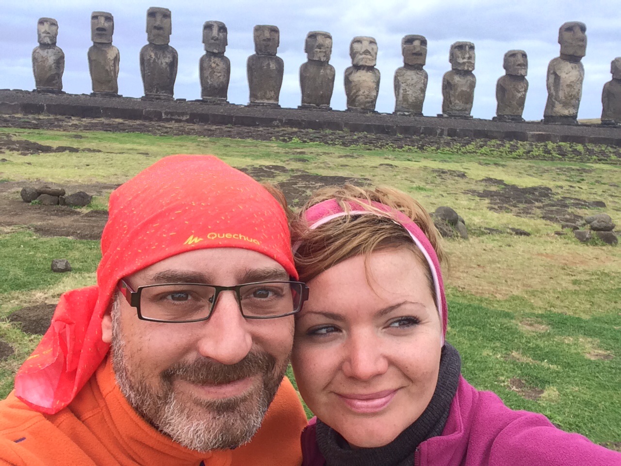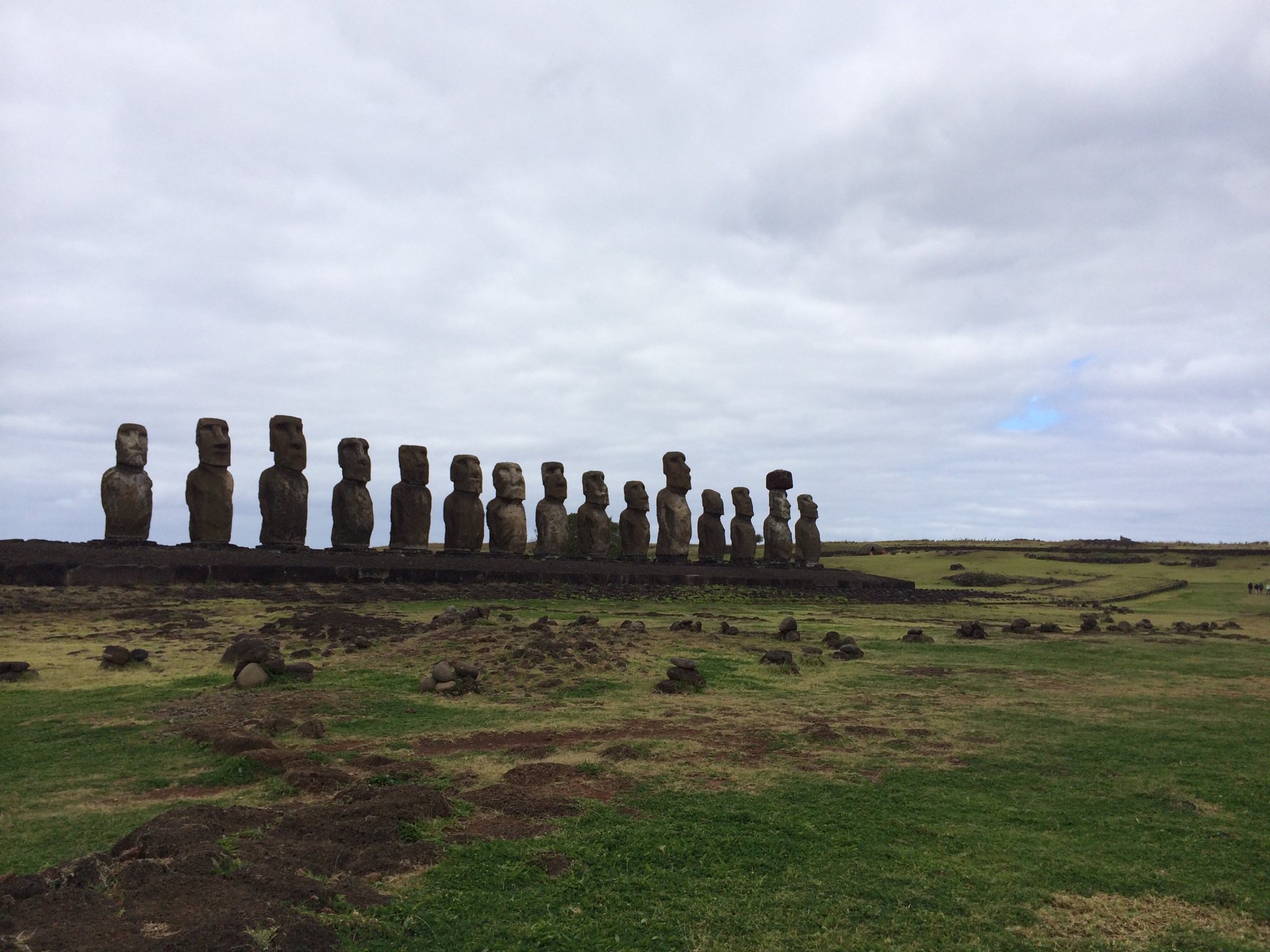 De repente tras una curva aparece ante nosotros una gran explanada donde podemos divisar 15 Moáis sobre su Ahu. Se trata de Ahu Tongariki.