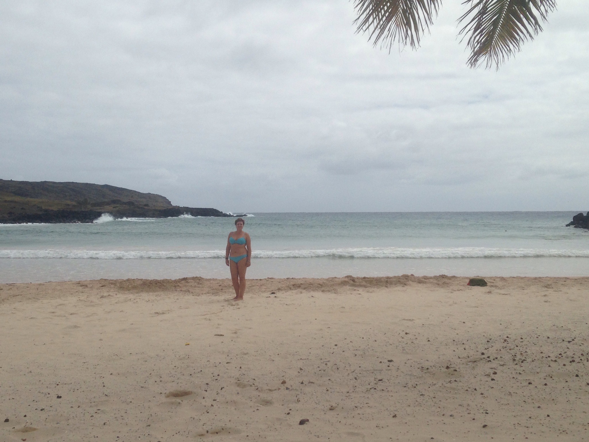 El camino sube la montaña lateral de Anakena para llegar hasta una meseta desde donde se ve la playa más abajo y por supuesto todo el acantilado. Desde allí sale un camino que hay que continuar a pie. Desde dónde dejamos el coche divisamos la playa que estaba cubierta por el mar pues el oleaje era fuerte. Así el que disfrutamos de las vistas, hicimos como 100 fotos y retomamos el camino de vuelta en dirección a la cantera Rano Ranuko donde se esculpían los Moais antes de ser trasladados a su ubicación final.