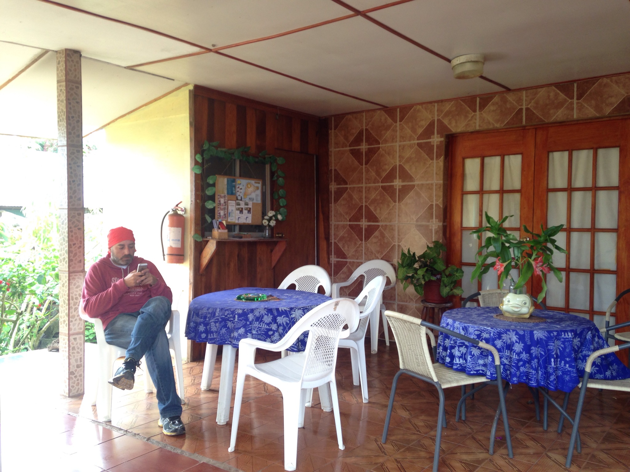 Mientras reviso las notas para ver qué visitamos hoy, una pareja sale de su cabaña en dirección al desayuno. Nos saludamos y digo esperando un par de minutos mas por Caracola.