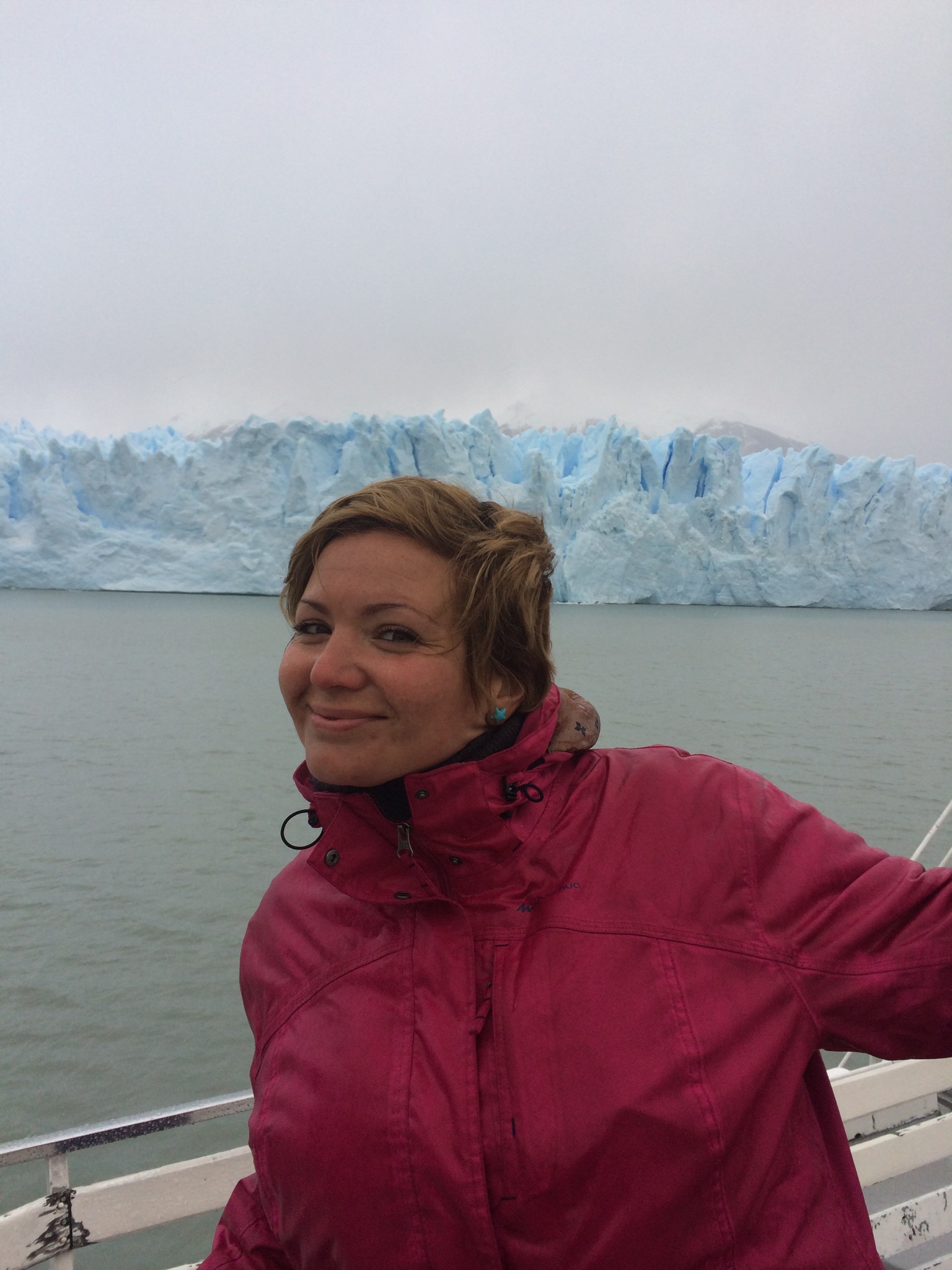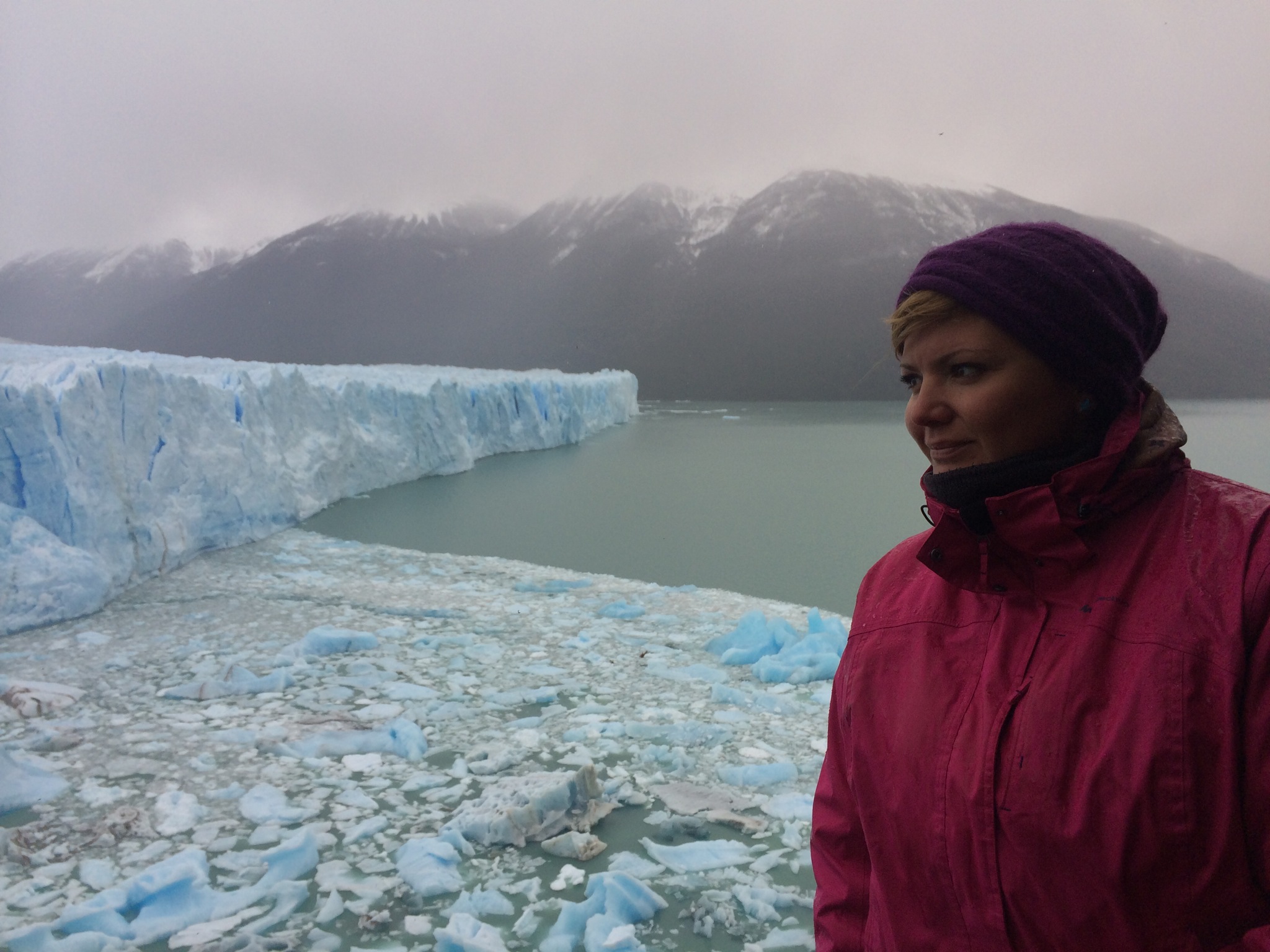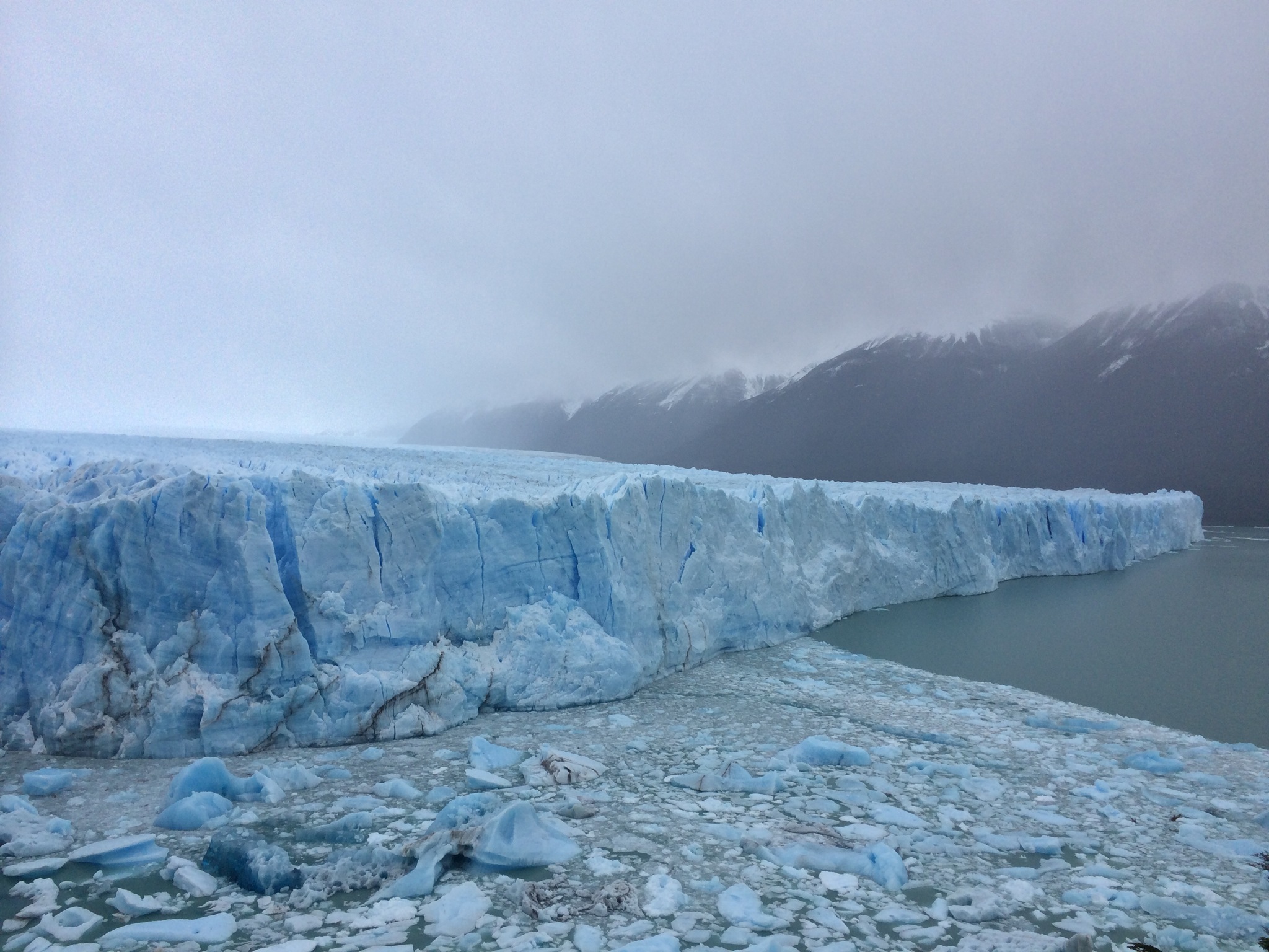 Llegamos a El Calafate sobre las 12 de la mañana, casi 6 horas después de nuestra partida. Aquí es donde recogemos a nuestra guía que nos acompañará en la visita al Perito Moreno. Nos explica las dimensiones del parque natural y nos señala el Lago Argentino, el más grande del país y tercero de Sudamérica. Se trata de un lago glacial, pues es alimentado por el hielo y nieves arrastradas por los 3 glaciales del parque. De ellos, el Perito Moreno es el más pequeño de todos pero a diferencia el de mas fácil acceso. De hecho nos indica la posibilidad de poder realizar un tour en barco por la pared sur del glaciar, viéndolo de abajo a arriba mientras que en las terrazas habilitadas se muestra con una visión desde arriba.
