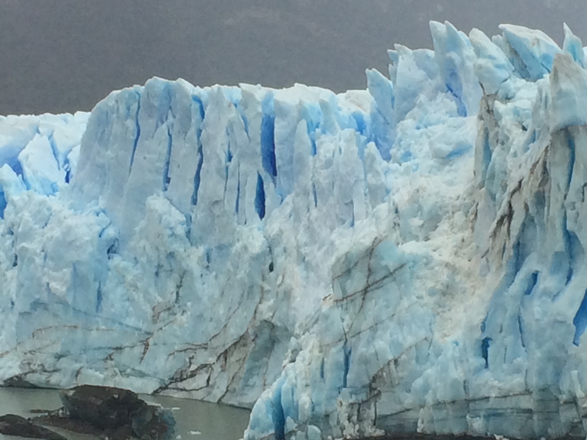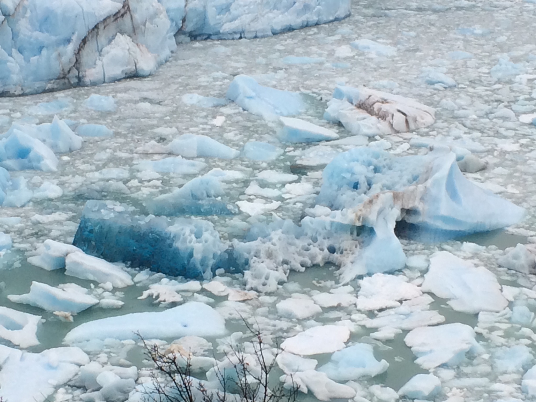 De repente oímos un trueno y vemos como un trozo enorme de hielo cae al lago hundiendose y reapareciendo como un témpano flotando en el lago uniendose al resto allí flotantes con sus formas caprichosas.