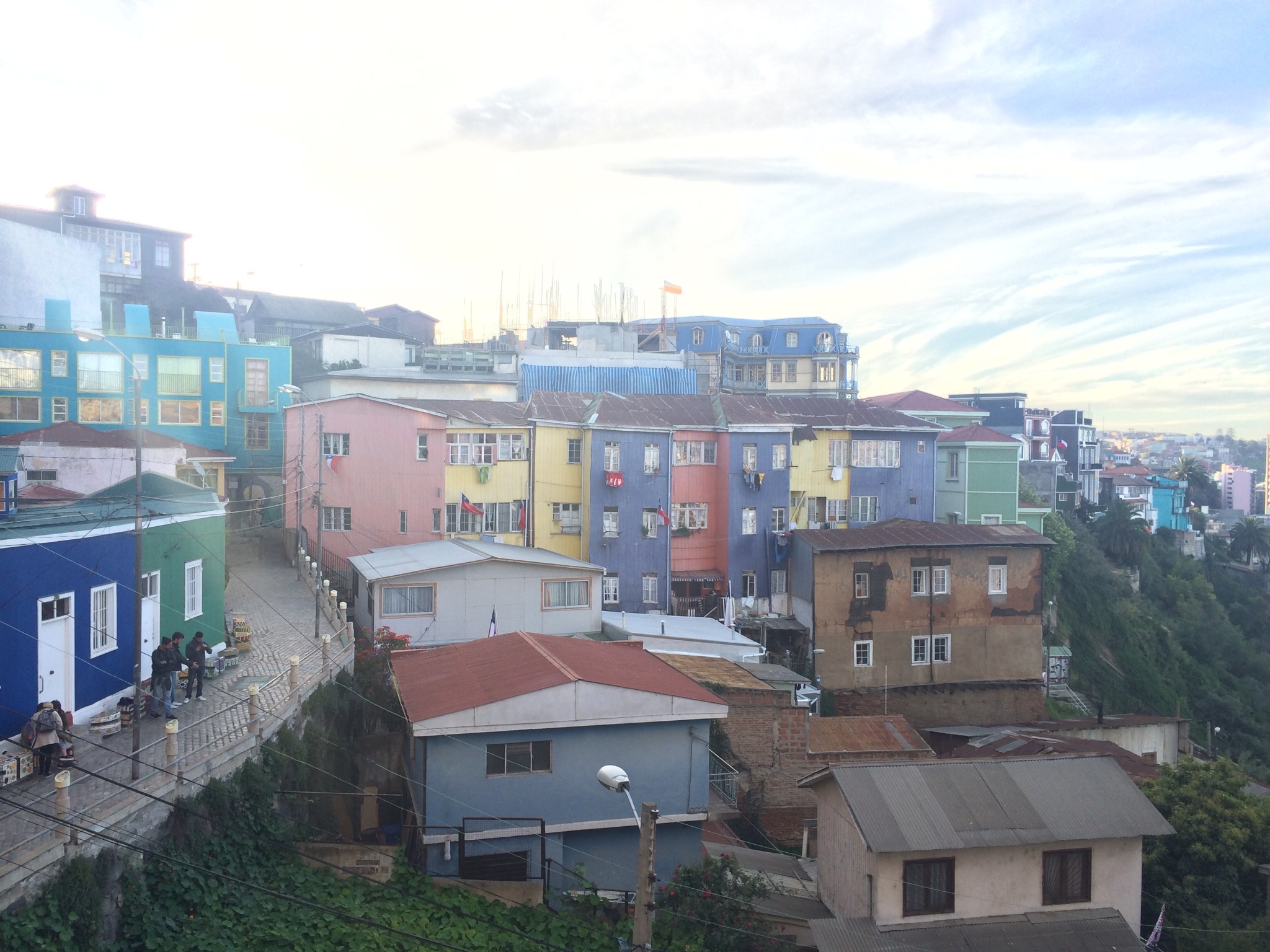 Al llegar arriba nos encontramos en La parte baja de Cerro Alegre. Nos recibe un mirador espectacular de la ciudad y es donde empezamos a apreciar sí belleza. A mi me recuerda al Albaycin de Granada por las calles y la montaña aunque evidentemente sus casas de colores le dan su seña sin igual.