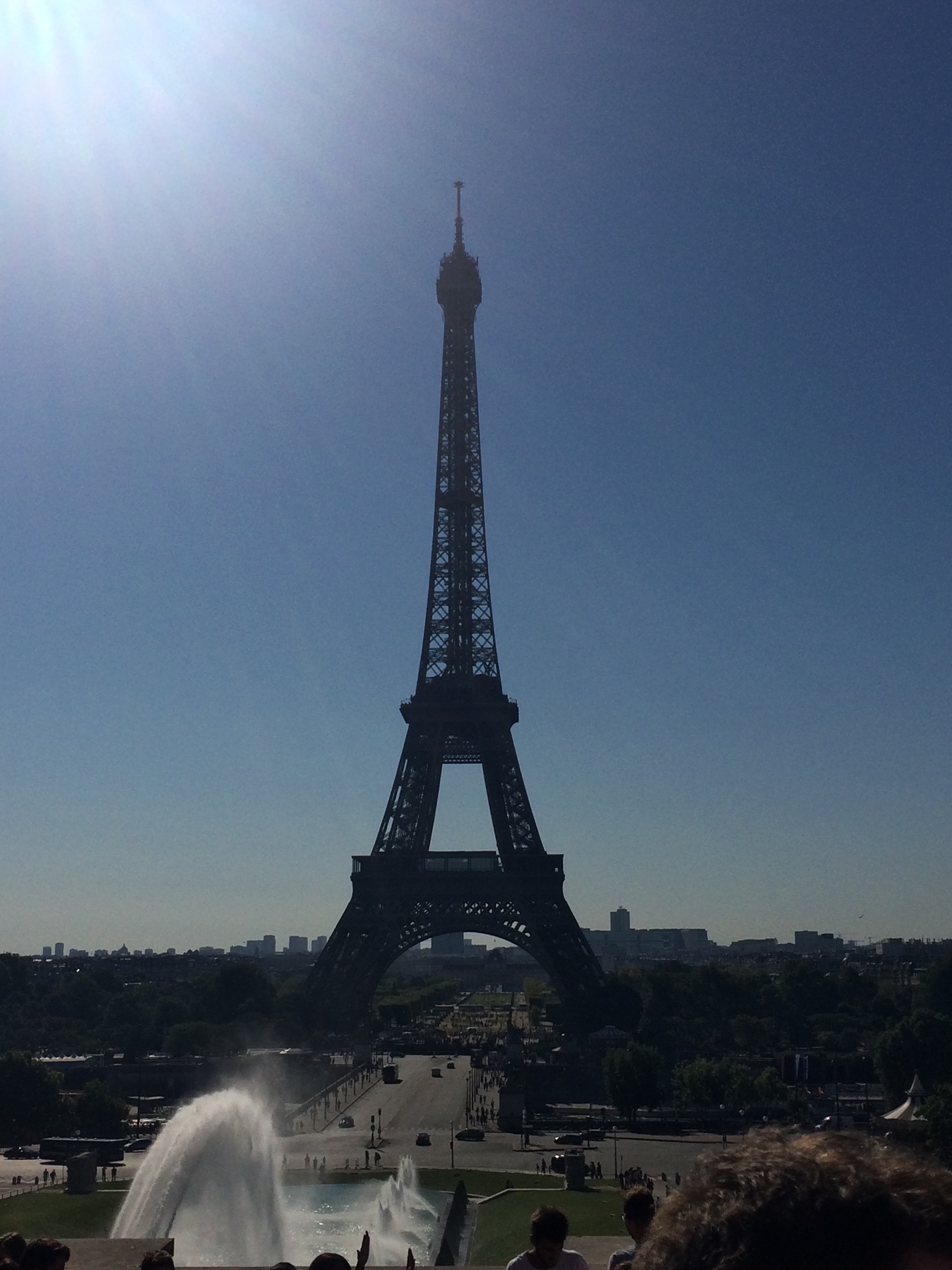 Cuando llegamos a la Torre Eiffel no se si por el madrugón o por qué pero no me sorprendo casi nada y hasta me decepciono un poco. La recordaba más alta. Bajando las escalinatas hasta cruzar el Sena, nos vamos acercando pero sigo sin sentir la chispa de estar en mi ciudad favorita de Europa. Tras unas fotos para dejar constancia del momento, vamos a uno de los cafes que quedan a la izquierda de los Campos de Marte desde donde podemos verla entre las calles parte de la Torre.