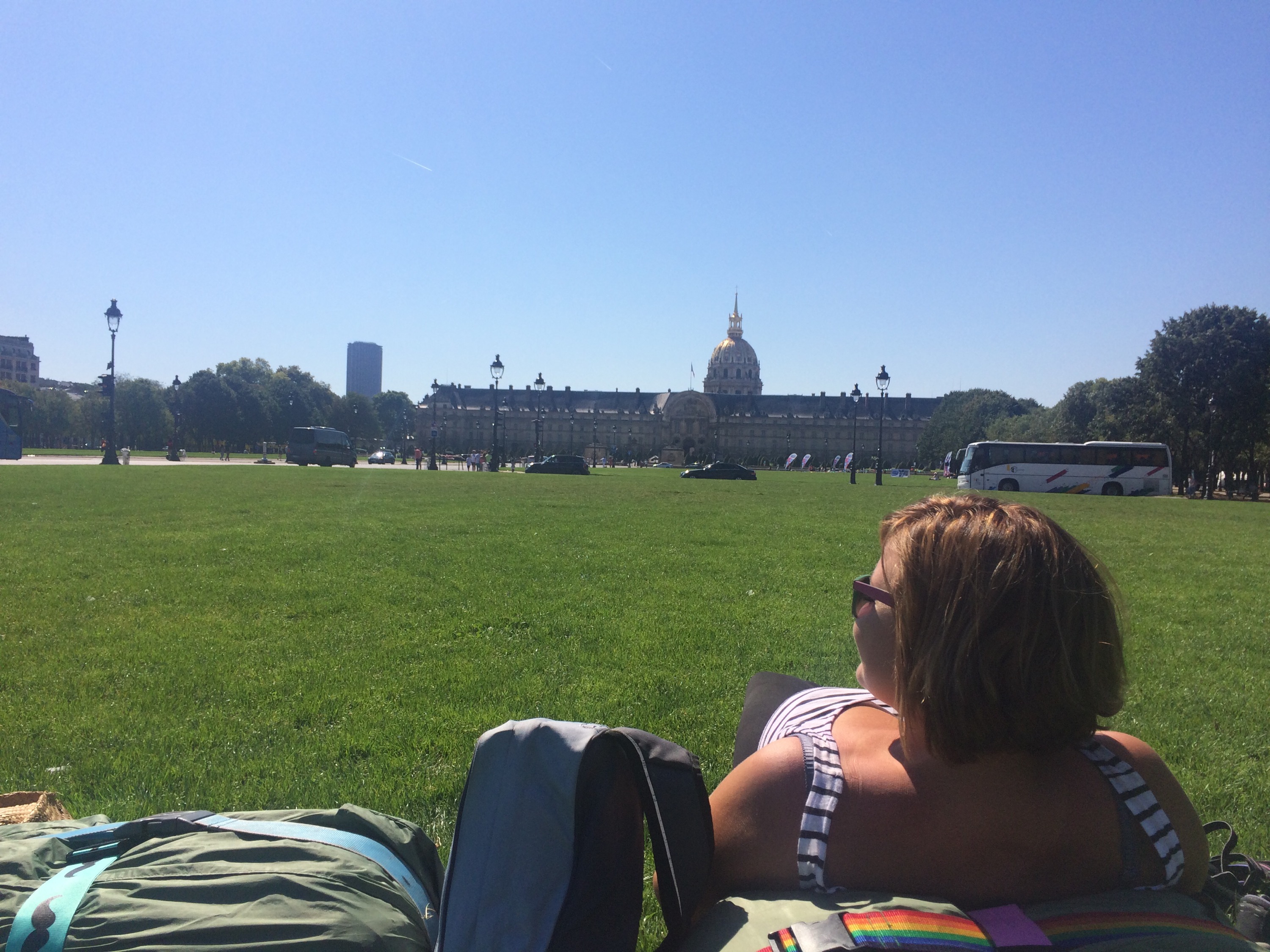 Terminamos nuestro paseo en Los Inválidos que por un motivo u otro no habiamos visitado antes, y allí nos tiramos en césped un rato a disfrutar de las vistas.
