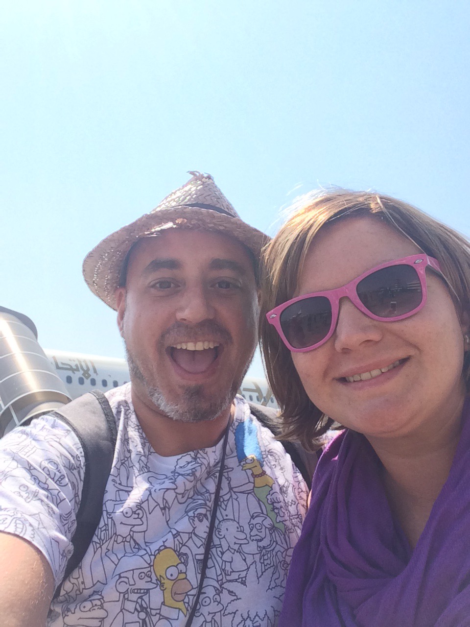 Abajo nos espera el taxi de Hailo que pedimos hace dos días. ¡Las ganas de vacaciones este año eran apabullantes!
