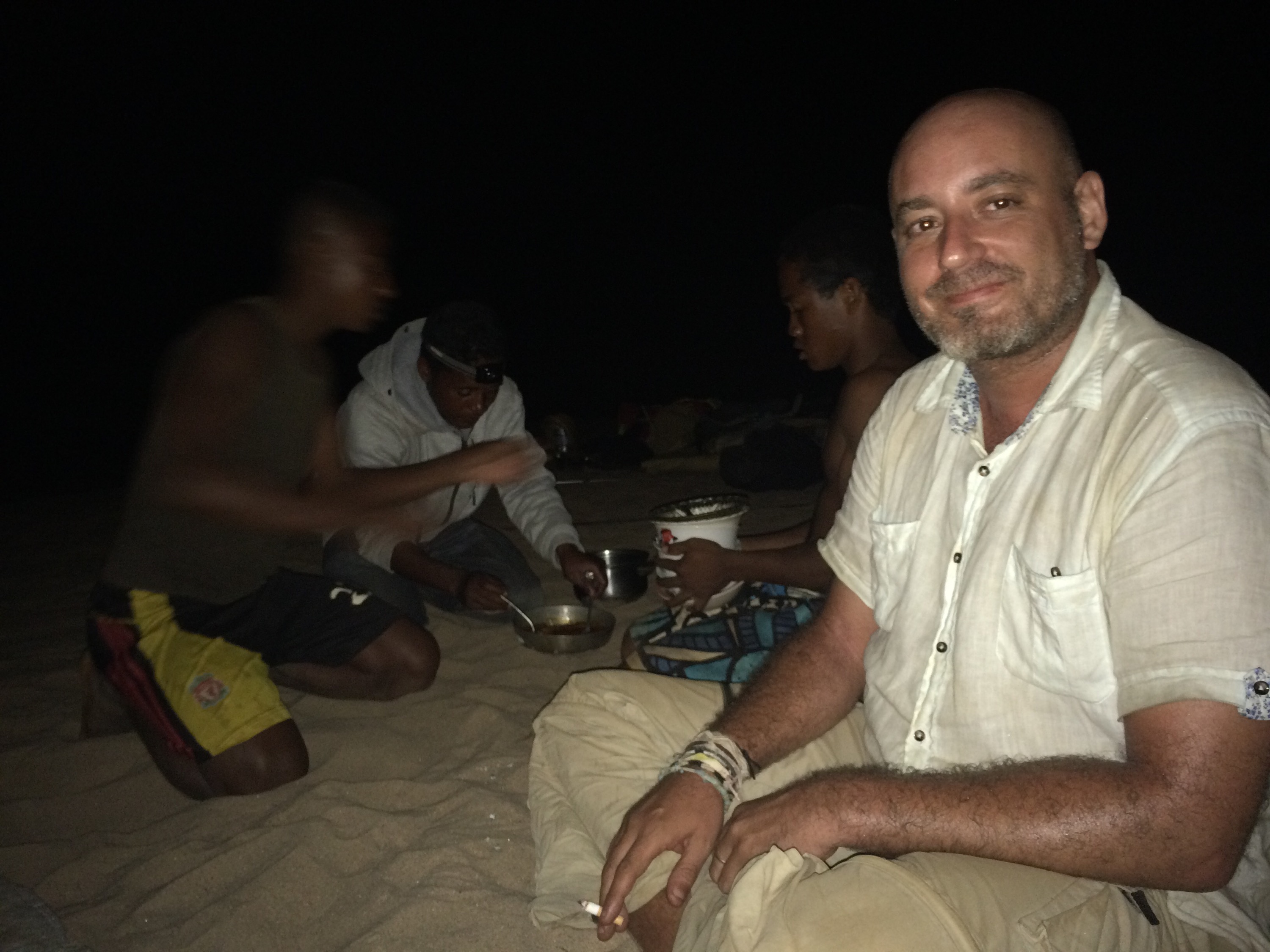 El perro cada vez se acerca más a nosotros, pero sin quitarle el ojo a los malgaches, ya que sabe que a la mínima se lleva una patada voladora. Ya somos amigos, se ha acercado a olerme y duerme detrás de mi en la arena mientras vamos bajando las cervezas a la luz de la luna y de un montón de estrellas, esas que no nos sabemos por ser las que no vemos nunca.