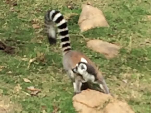 Como lo fácil ya lo hemos visto, ahora queremos ver a baby-lémur, pero va tan abrazado y es tan chiquitín que no le podemos ver.
