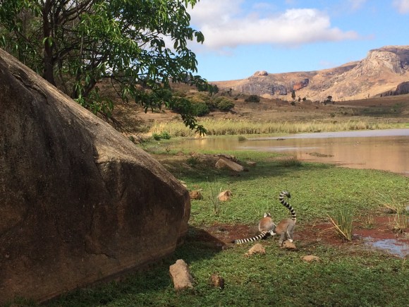 Uy que susto!! Un lémur me acaba de pasar por el brazo saltando de una rama a otra y otro par de ellos caminan airosos siguiendo a Oru por el sendero.