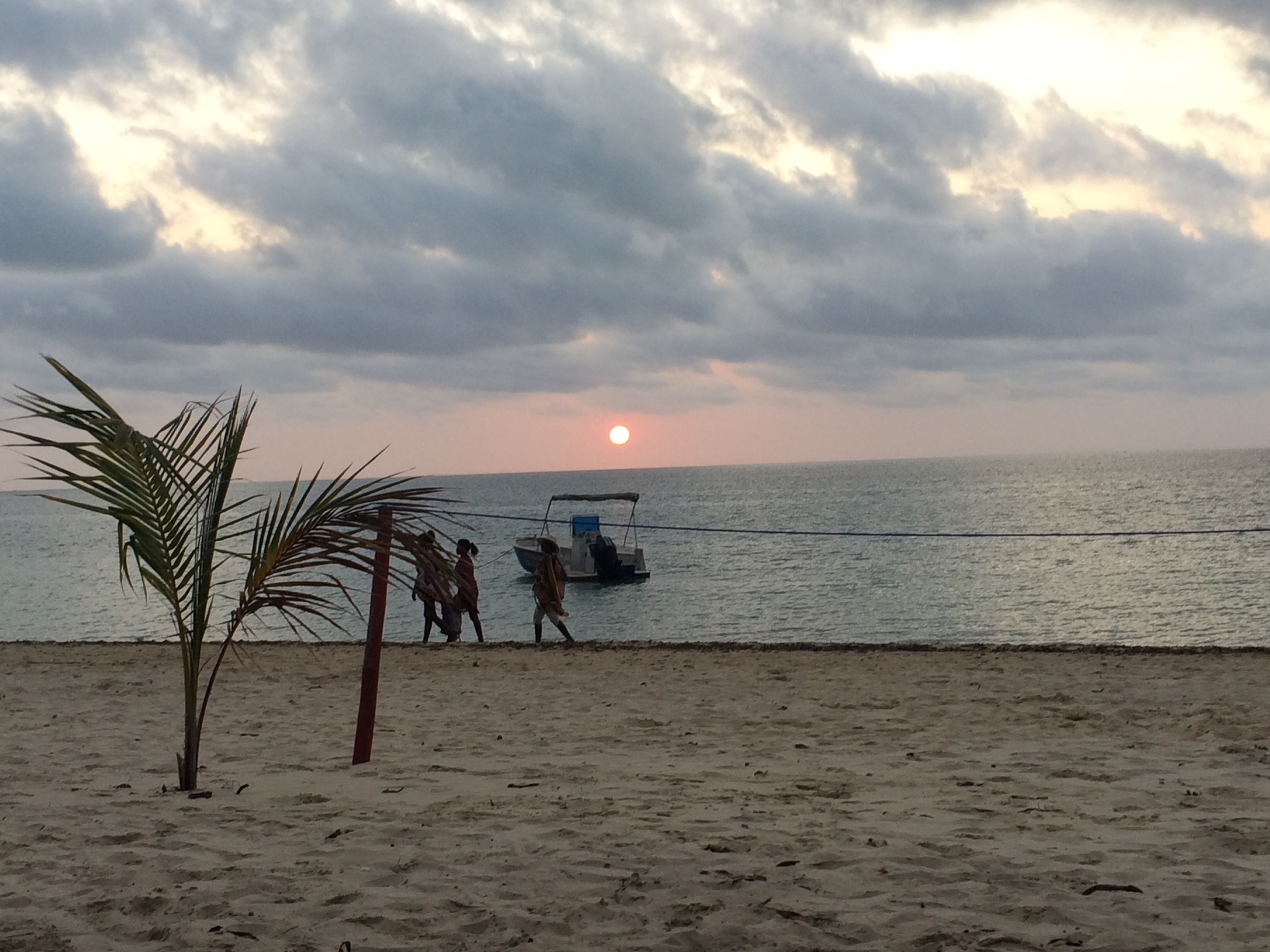 Cuando estamos tomando café, vemos un par de Vazaha a lo lejos que caminan por la playa, como no, rodeados de niños que les ofrecen y les piden de todo. Nos fijamos y ¡resulta que son Mikel y Mónika! Les llamamos y como pueden se zafan de los niños y se acercan. ¡Qué alegría verlos de nuevo!