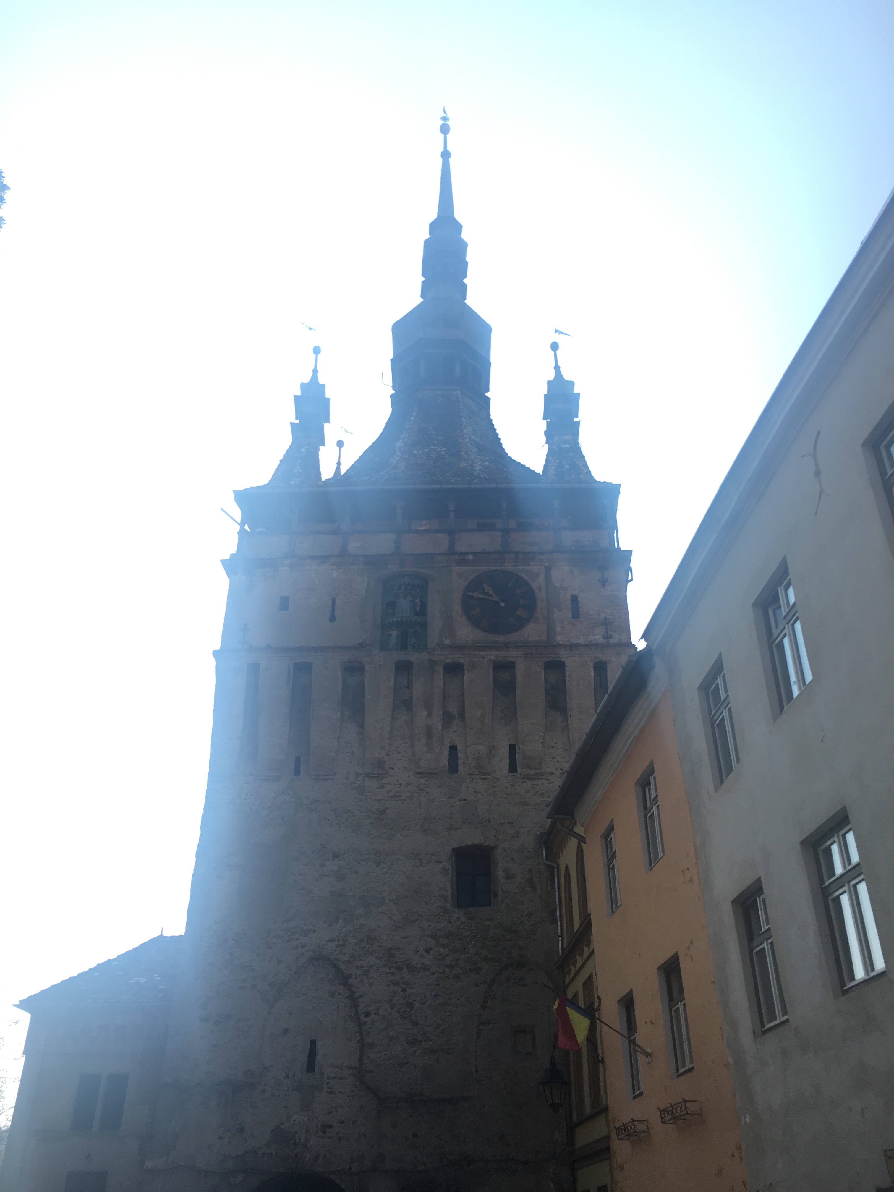Dando la vuelta llegamos a la torre de los orfebres, que ahora ocupa la radio de sighisoara. Se puede subir hasta el primer tramo (hasta donde hay escalera por fuera, vaya) y dentro solo se ve un pequeño habitáculo con las siglas de la radio y los números de la frecuencia. No tengo demasiado claro que siga funcionando, hoy al menos está cerrada, y si lo hace seguramente solo ponga música de los 80-90’s como sucede en el resto del país.