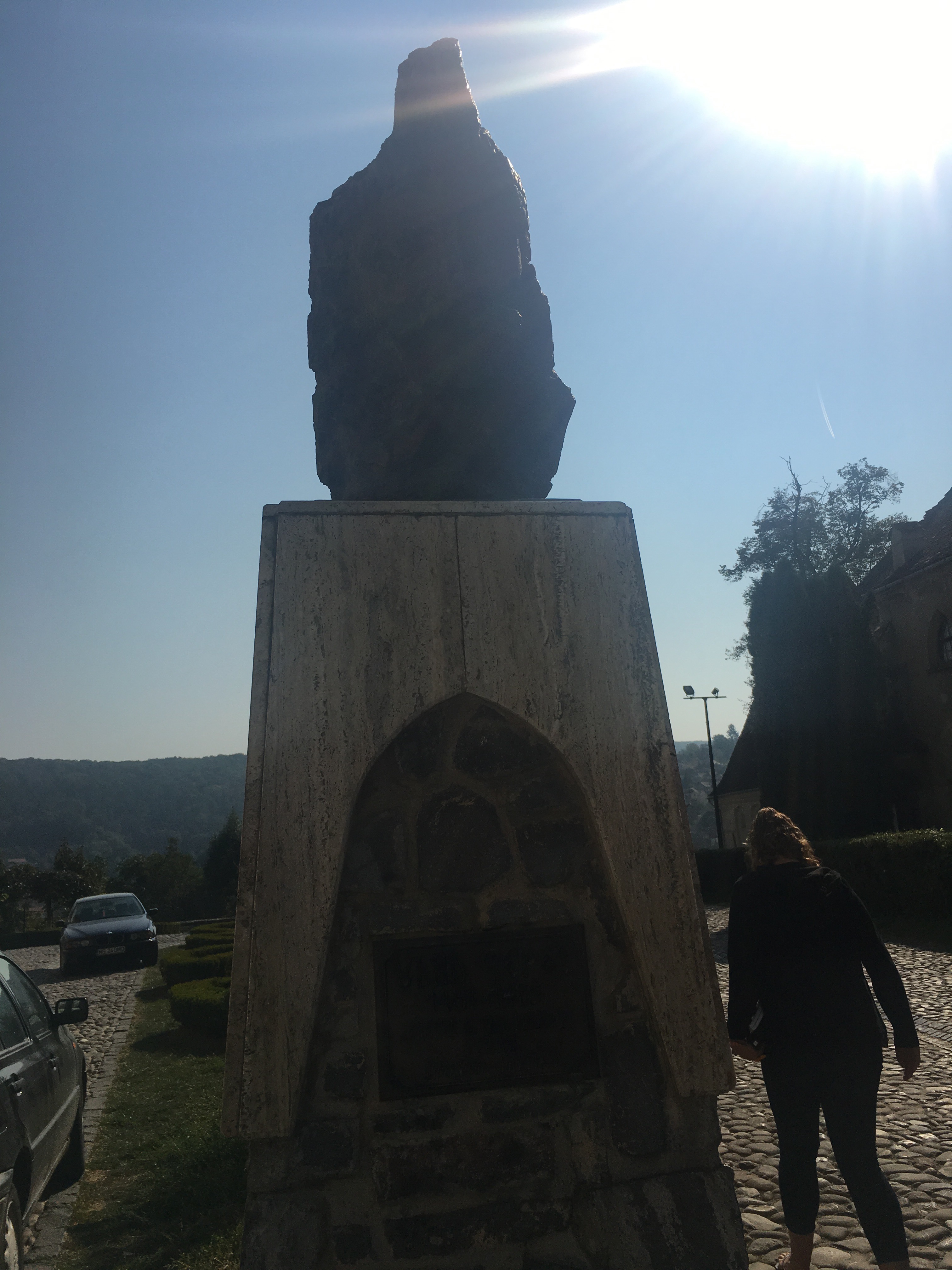 De camino a por Patricio vamos pensando, cuánto tiene que agradecer esta ciudad patrimonio de la Unesco a su más sangriento representante. ¿Sería una ciudad encantadoramente desconocida si Bran Stoker no se hubiera inventado a Dracula basándose en el tirano de Vlad Tepes? ¿Por qué si este sádico empezó sus andanzas y su reinado del miedo y la sangre en esta ciudad hay esculturas, fotos y reclamos constantes por todo el pueblo? ¿Hasta donde están orgullosos de su personaje más famoso? ¿O es simplemente que el recuerdo de un tarado da de comer a mucha gente y eso bien permite enorgullecerse de un personaje que debería ser la vergüenza de un país? Así a lo loco empezamos y terminamos.