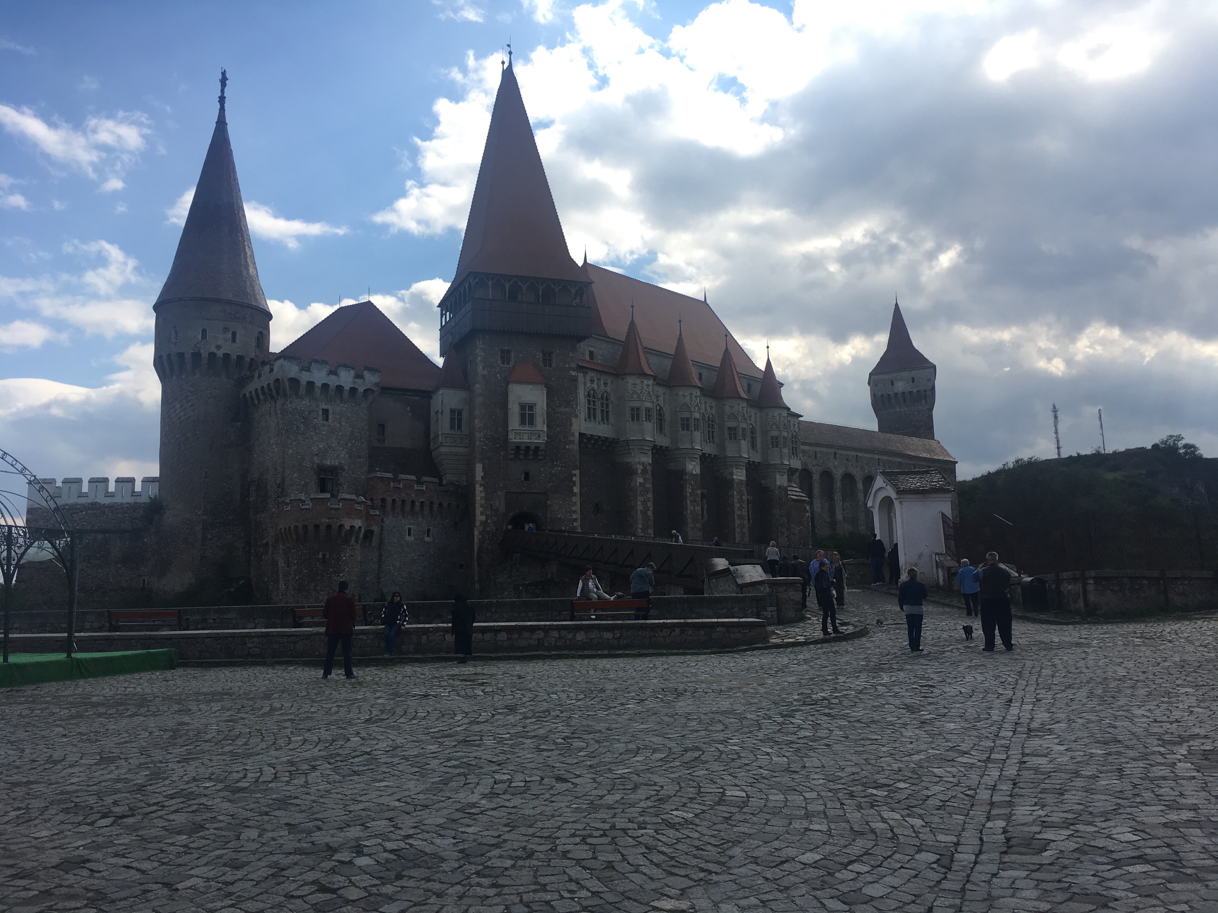 Frente a la parte posterior del castillo hay varias gradas, y yo he decidido que aquí hacen una imitación en pequeño de las Justas Medievales de Hospital de Órbigo (¡si no habéis ido aún, deberíais!). El escenario se presta a ello, pero el espacio es un poco pequeño. Nunca lo sabremos, porque las explicaciones de la guía, internet y las propias del castillo (solo en rumano, alemán e inglés.. yo creo que solo nos tienen en consideración por el AVE cobre del AVE, pero no creo que sepan que existimos más allá de eso. Sino, ¡pondrían algún triste cartel en cristiano!) se centran únicamente en el dueño del castillo y sus tres mujeres. No hay nada de historias truculentas, muertes sospechosas, leyendas amorosas ni nada que nos llame la más mínima atención.
