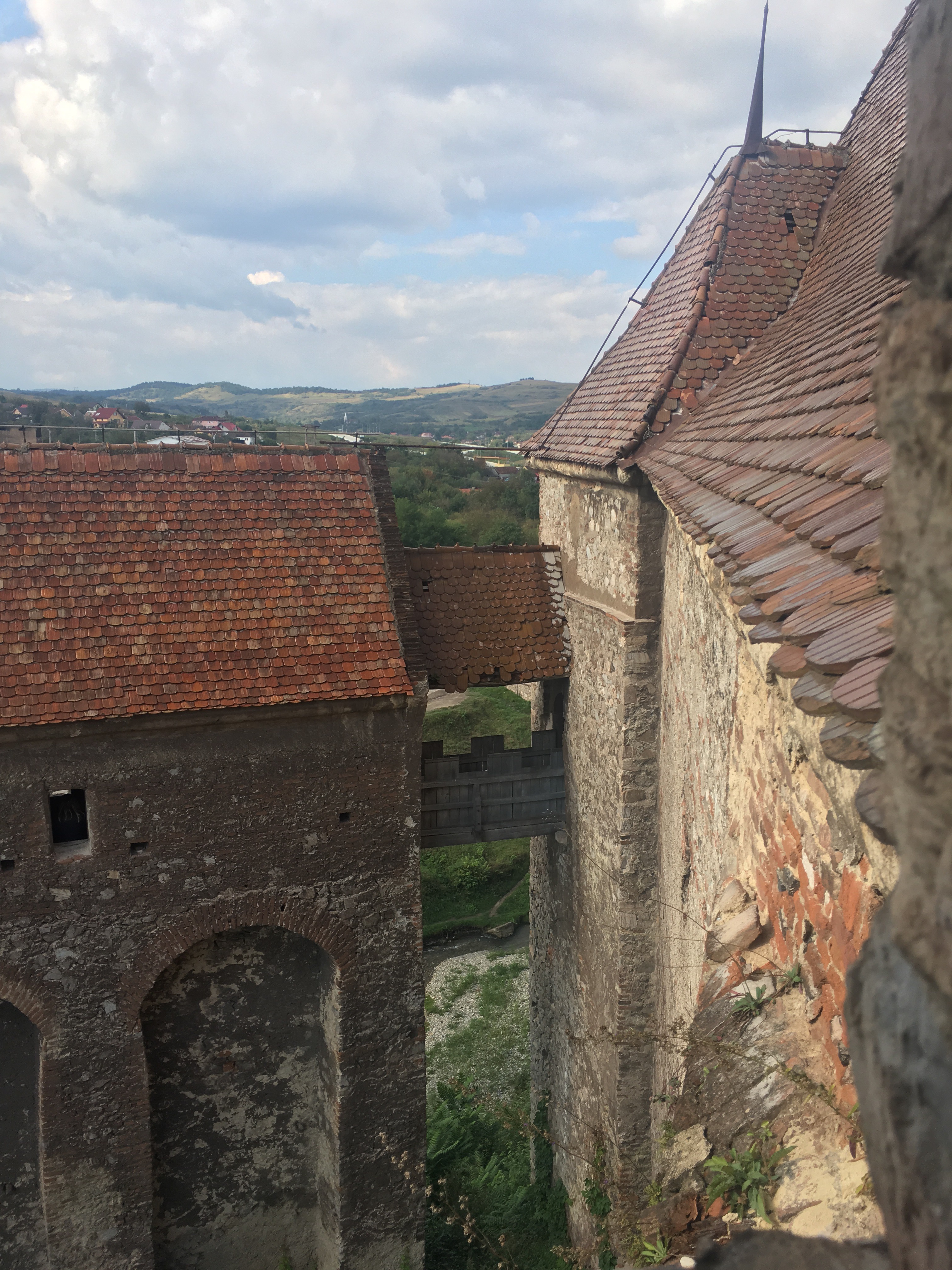 Paramos en medio de la nada para tomar un café y una tortilla a la rumana (queso y salchichas) y decidimos hacer nuestro camino relajado, disfrutando del paisaje de «un sitio muy, muy lejano», hasta llegar a Corvin Castle.