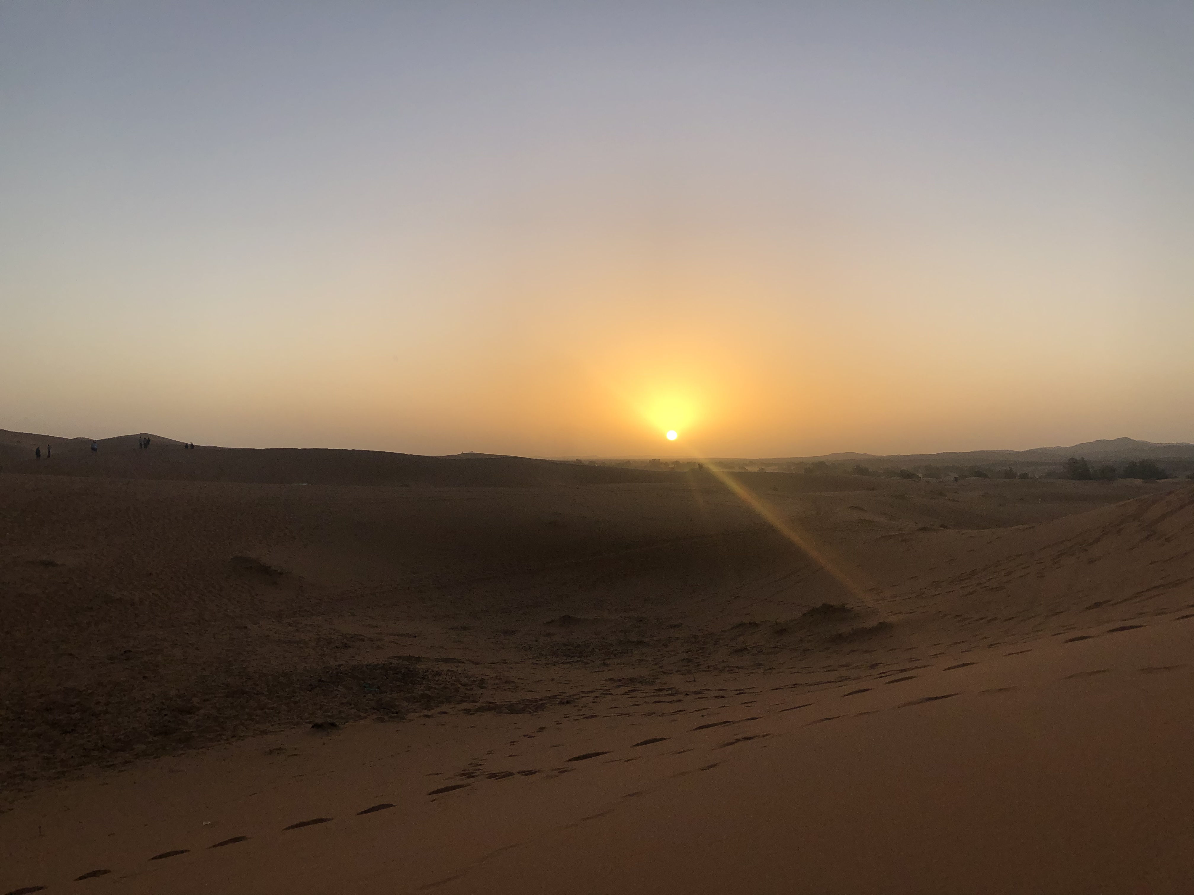 Caminamos hacia las dunas. Nos alejamos de nuestro grupo lo más posible, aunque no hace demasiada falta; ver amanecer no estaba dentro de los planes del 80% del grupo.