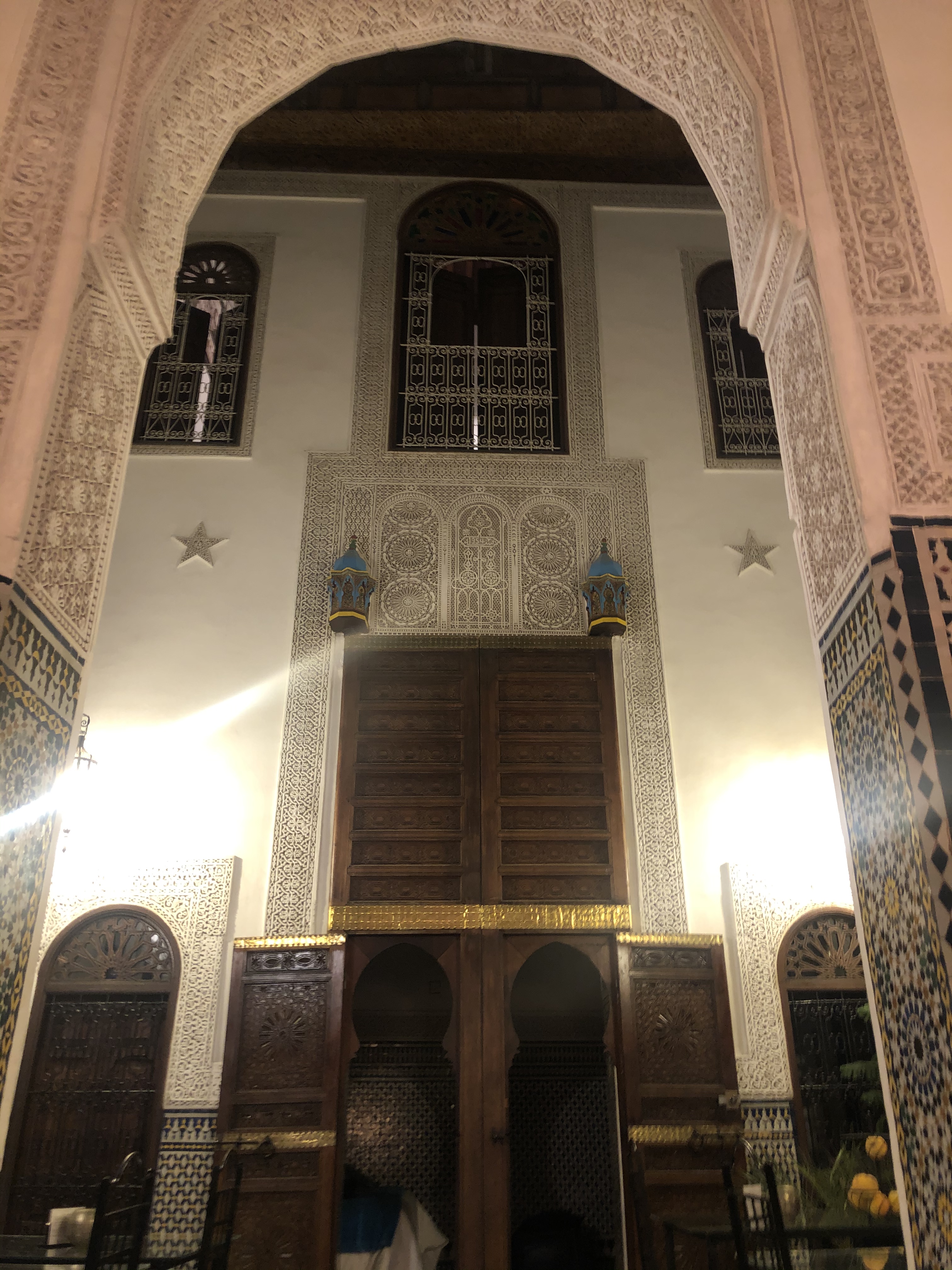 Soufyen me pide el número del Riad, y les llama desde su móvil. Cuando cuelga nos dice que vendrán a buscarnos. Fez es complicada y ya es de noche, no es bueno que nada más llegar vayamos solos. 😳