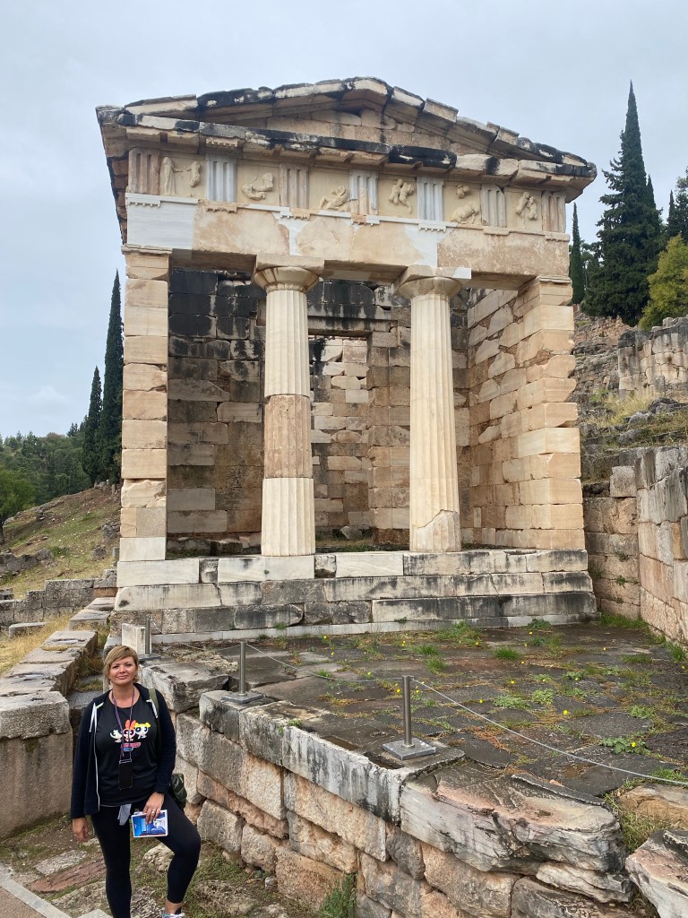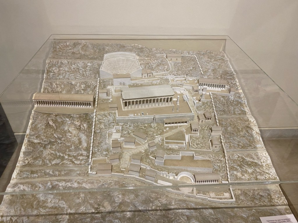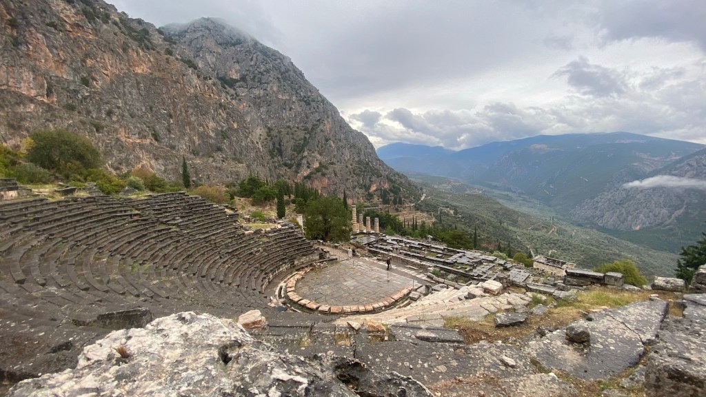 Vamos por partes. En Delfos se construyó en el 400 AC el Templo de Apolo que contendría el famoso Oráculo. Pero esto no quiere decir que fuera un único edificio, sino que era como una especie de “pequeño pueblecito” que se usaba como peregrinaje al santuario de Apolo, pero que además de este tenía otros edificios más pequeños.