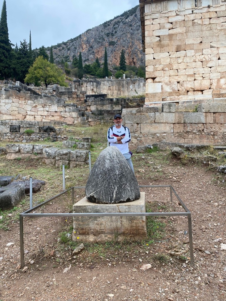 Como las leyendas son leyendas unas dicen que Zeus hizo volar dos Águilas desde dos puntos opuestos del país y se encontraron aquí en Delfos, así que Zeus plantó una piedrecita con forma de huevo, simbolizando el centro del mundo, el ombligo.