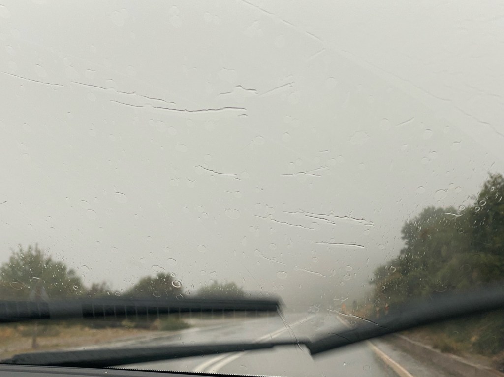 ¿La carretera es una mierda, como puede ser esta la única carretera hasta Meteora? Llueve a cántaros y el pobre Oru va más atento que un jubilado a una obra; las líneas de la carretera se confunden con el asfalto y creemos que están pintadas con tempera. Los camiones salpican y a pesar de no haber demasiado tráfico la visibilidad es casi nula en algunos puntos. Yo voy escribiendo porque no quiero mirar que me pongo blanca y Oru como experto conductor que es no sé queja demasiado, pero de vez en cuando resopla y dice: ¿Pero como van a meter a España en el mismo saco que a Grecia con esta mierda de carretera que tienen? También tenemos la alternativa que es: ¡Aprended a conducir joder!