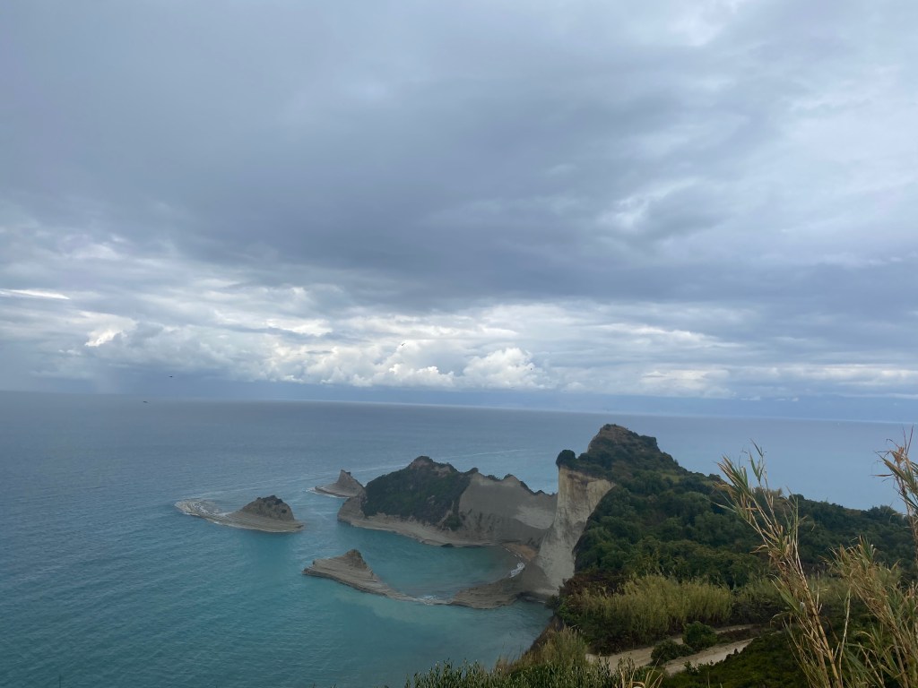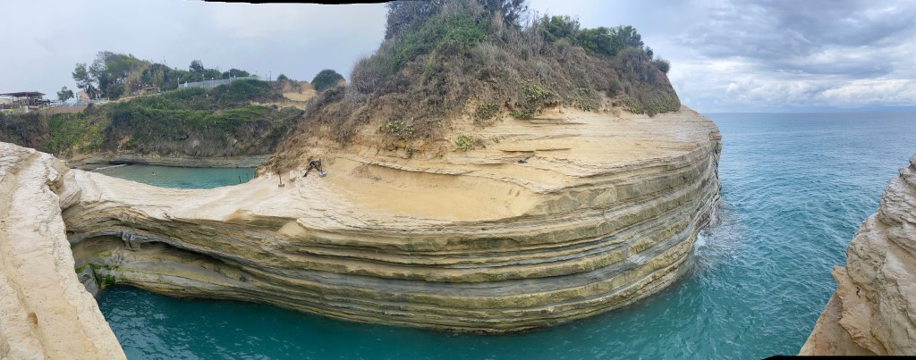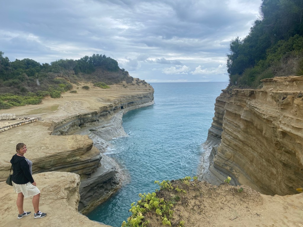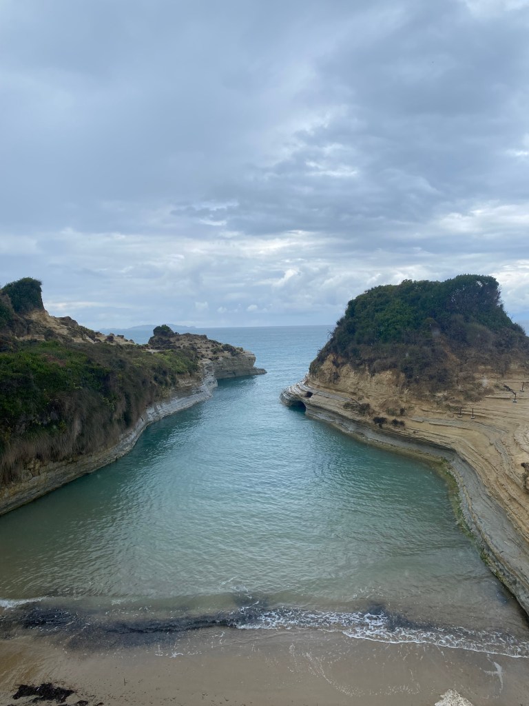 Acompañados de una intensa lluvia nos dirigimos a la zona de playas. ¡Somos así de locos! Nuestra primera parada será Peroulades para ver el “Canal del amor”, muy cerca de Sidari.