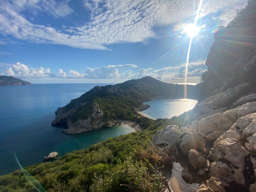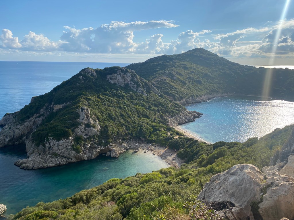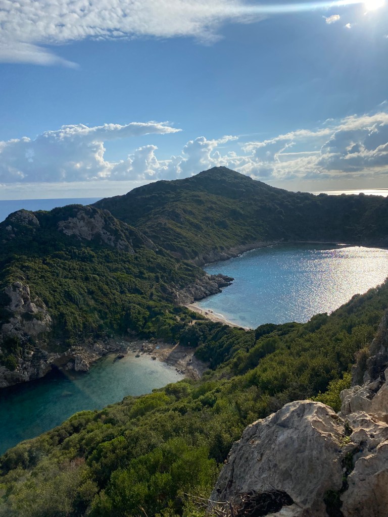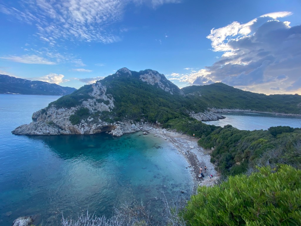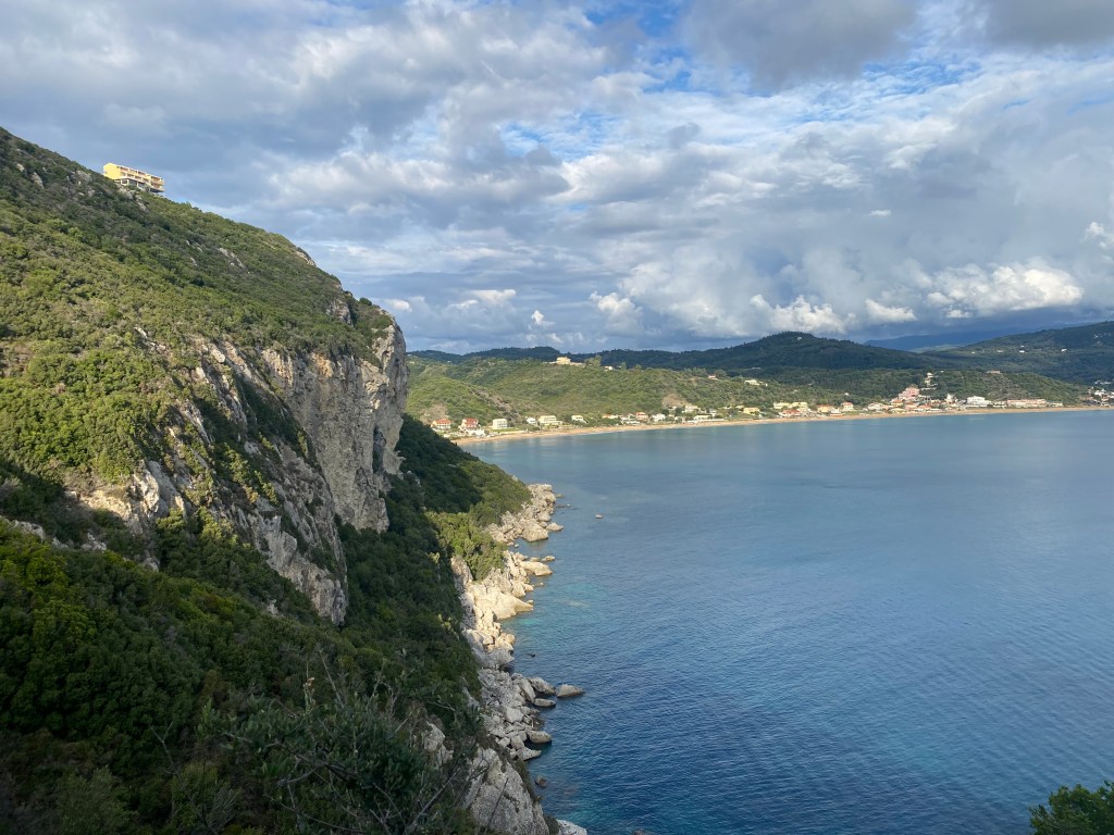 El pueblo de Sidari está rodeado de bosques y según hemos visto es bastante turístico. A simple vista buscando dónde aparcar podemos ver que es un pueblo de veraneo más, sin mucho atractivo así que esperamos que las calas no nos decepcionen.